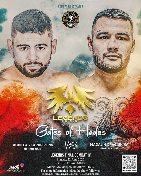 Ο Αχιλλέας Καραπιπέρης μετά την κατάκτηση του παγκοσμίου τίτλου της WAKO PRO στο Ηράκλειο Κρήτης, επιστρέφει στη δράση στο ρινγκ του ‘Legends Final Combat IV – Gates of Hades’ στις 22 Ιουνίου.