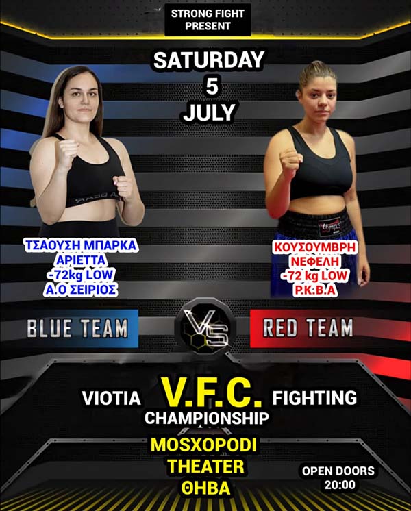 Η Τσαούση-Μπάρκα Ουρανία-Αριέττα και ο Αναστασόπουλος Κωνσταντίνος ρίχνονται στη μάχη του Πρωταθλήματος Kick Boxing V.F.C. με κανόνες Low Kick, έπειτα από μήνες σκληρής προετοιμασίας, αφοσίωσης και θυσιών.