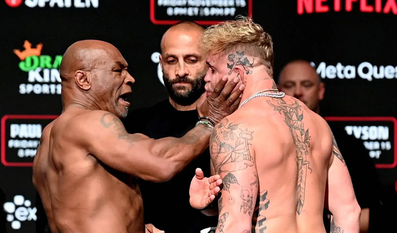 Ο Mike Tyson ξέφυγε στη διάρκεια του staredown με τον Jake Paul δίνοντας τους μια ισχυρή σφαλιάρα.