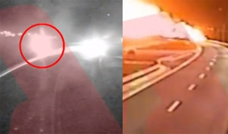 Δευτερόλεπτα αργότερα εμφανίζεται μια στιγμιαία λάμψη και ακολουθεί μια τεράστια έκρηξη. Είναι η στιγμή του τραγικού δυστυχήματος, που τα τρένα συγκρούονται στα Τέμπη και τυλίγονται στις φλόγες.