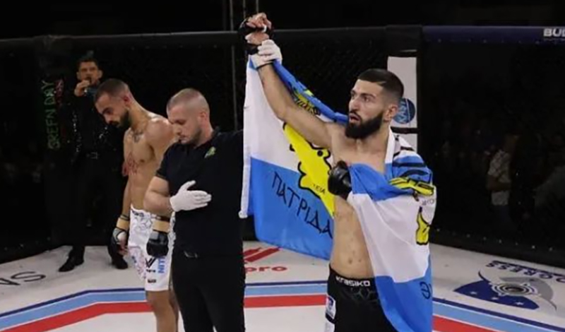 Στον δεύτερο γύρο με ένα εξαιρετικά τοποθετημένο γόνατο έστειλε στο καναβάτσο τον αντίπαλό του όπως μπορείτε να δείτε στο βίντεο που μόνταρε το ufight.gr .