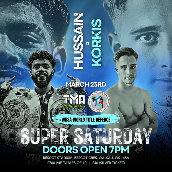 Ο Κόρκης θα βρει απέναντί του τον Shakeel Hussain στο πλαίσιο της διοργάνωσης TMA. Το ματς γίνεται στα 61 κιλά σε 5 γύρους των 2 λεπτών στο στυλ του Full Contact Kickboxing.