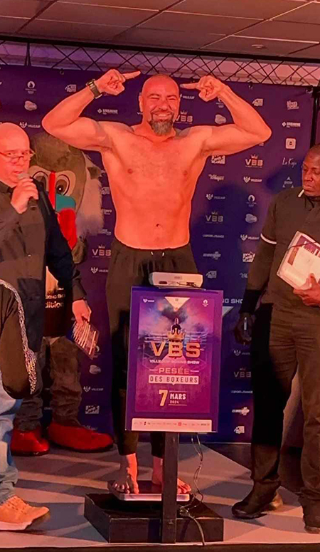 Το ματς γίνεται με αντίπαλο τον Γάλλο Amine Kebir και είναι προγραμματισμένο για 3 γύρους των 3 λεπτών.