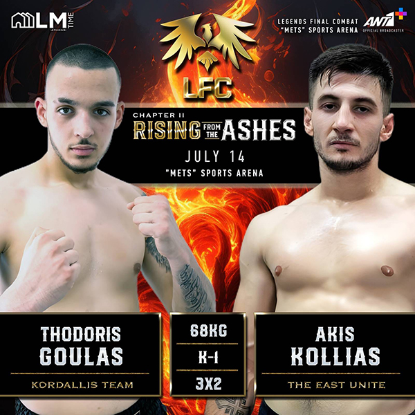 Ο Θοδωρής Γούλας από τον Καλλίμαχο, με προπονητή τον Νικο Κορδάλη, θα αναμετρηθεί με τον Άκη Κόλλια, με προπονητή τον Γιάννη Μπασαρ απο το east unite gym. Η αναμέτρηση θα διεξαχθεί με όρους K1, διάρκειας 3 γύρων των 2 λεπτών.