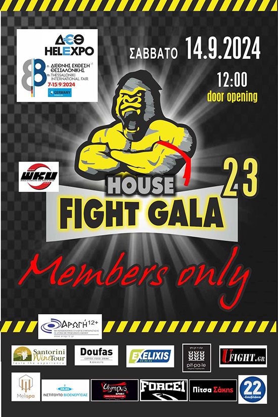 Έτσι, το ‘House Fight Gala 23’ θα διεξαχθεί μέσα στην διεθνή έκθεση Θεσσαλονίκης στα πλαίσια του ‘Hobby Festival’ στις 12 Σεπτεμβρίου όπου θα πραγματοποιηθούν αγώνες ανάμεσα σε χομπίστες ερασιτέχνες, μόνο αθλητές φίλους των μαχητικών αθλημάτων οι οποίοι θέλουν να δοκιμάσουν την αδρεναλίνη και την ένταση του ring χωρίς όμως το άγχος ή τους τραυματισμούς και την πίεση του αγώνα!