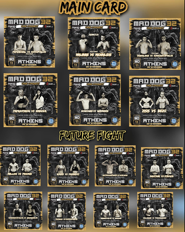 Αυτό το Σάββατο 30 Νοεμβρίου λαμβάνει χώρα στο Περιστέρι (Σπετσών 24) το ‘Mad Dog 32 – Cage Conquest’.