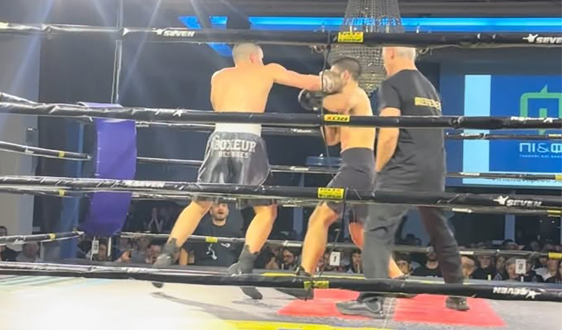 Ο Γιώργος μπήκε δυναμικά στο ρινγκ, επιβάλλοντας τον ρυθμό του από την αρχή. Στον δεύτερο γύρο, κατάφερε να πετύχει ένα εντυπωσιακό Knockdown, δείχνοντας την ανωτερότητά του και αναγκάζοντας τον αντίπαλό του να δεχτεί τη δύναμή του!