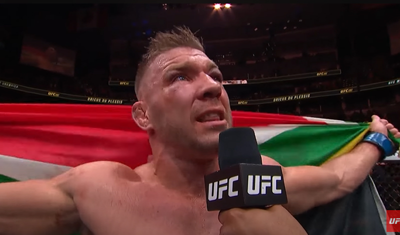 Ο Dricus du Plessis στις πρώτες του δηλώσεις μετά την μεγάλη νίκη απέναντι στον Sean Strickland πανηγύρισε με την σημαία της Νοτίου Αφρικής στις πλάτες του.