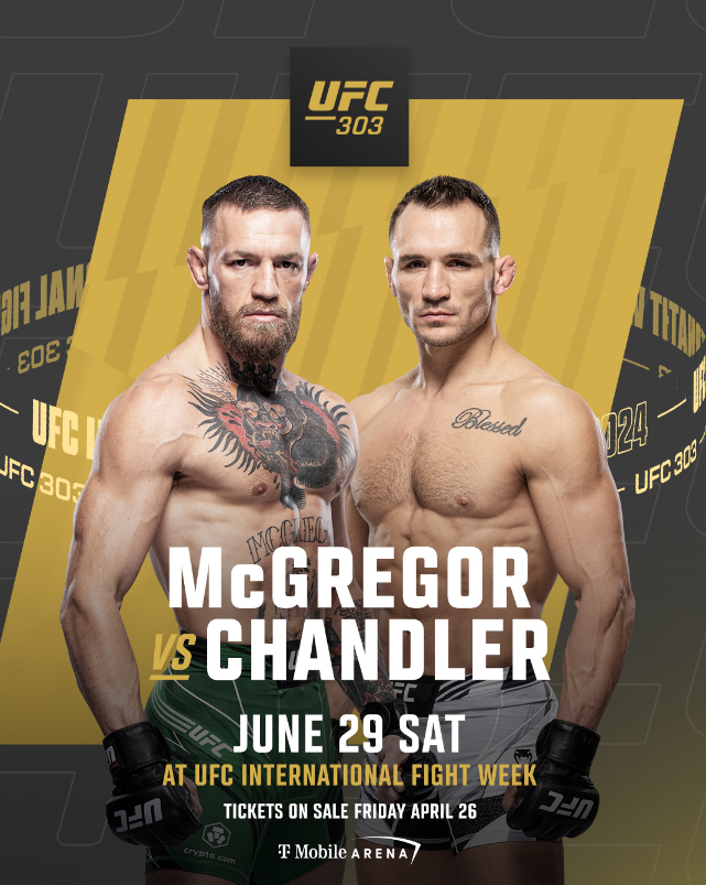 Το UFC ανακοίνωσε πριν λίγα λεπτά επίσημα πως ο αγώνας του Conor McGregor με τον Michael Chandler θα γίνει στις 29 Ιουνίου στο πλαίσιο του ‘UFC 303’.