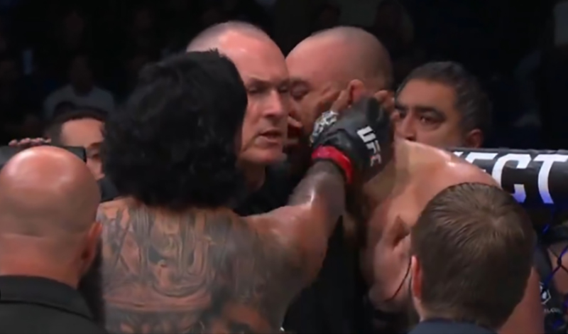 Junior Tafa confronts Valter Walker after the verbal submission😬
