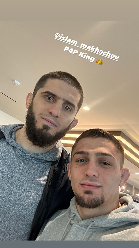 Επίσης μέσα από stories του τον είδαμε να φωτογραφίζεται και με τον νυν lightweight πρωταθλητή Islam Makhachev.