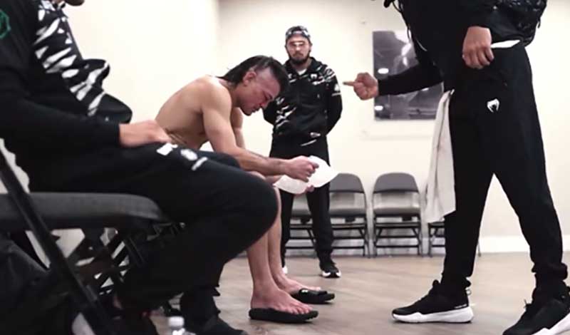 Σήμερα βλέπουμε για πρώτη φορά αντίδραση του αθλητή στα αποδυτήρια αμέσως μετά την σφοδρή μάχη που έδωσε με τον Αυστραλό πρωταθλητή.