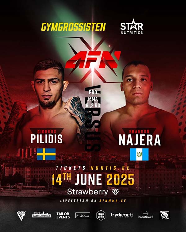 Απέναντί του αυτή τη φορά στη Στοκχόλμη, θα βρεθεί ο Brandon Najera από τη Γουατεμάλα στα 61,2 κιλά. Ένας σκληροτράχηλος και έμπειρος μαχητής, με πλούσιο παλμαρέ νικών, που ταξιδεύει και πάλι στη Σουηδία για να αποδείξει πως είναι έτοιμος για όλα.