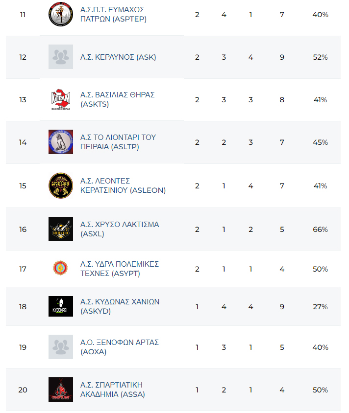 8. Α.Σ. ΜΑΧΗΤΙΚΩΝ ΤΕΧΝΩΝ ΠΕΡΑΜΑΤΟΣ (ASMTP) 15