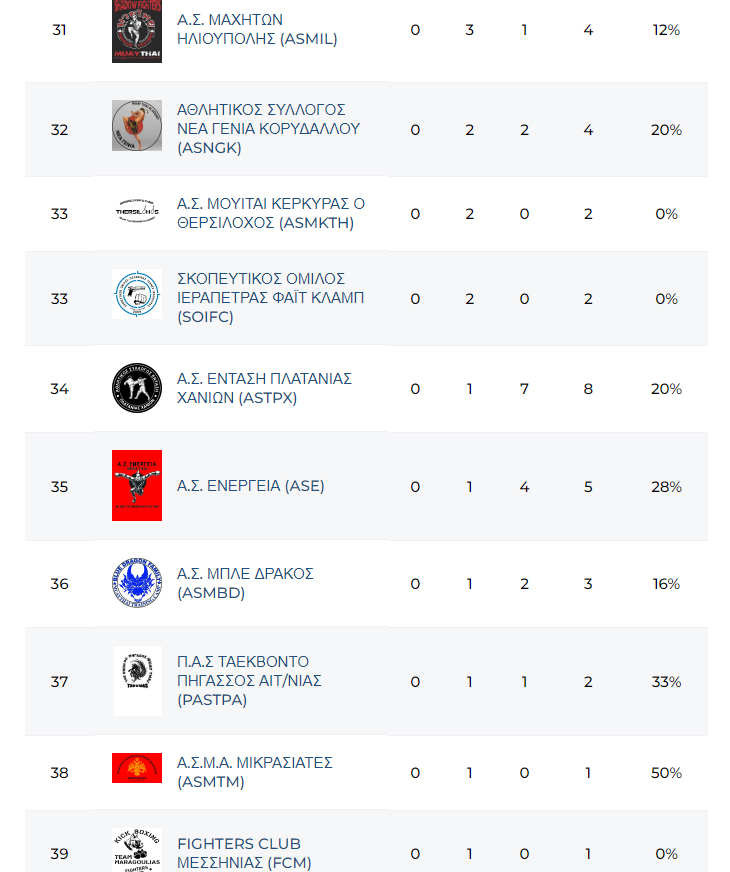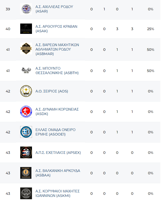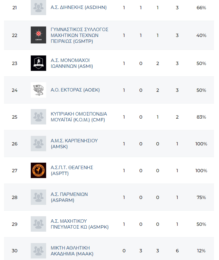 Δείτε αναλυτικά την κατάταξη όλων των Συλλόγων :